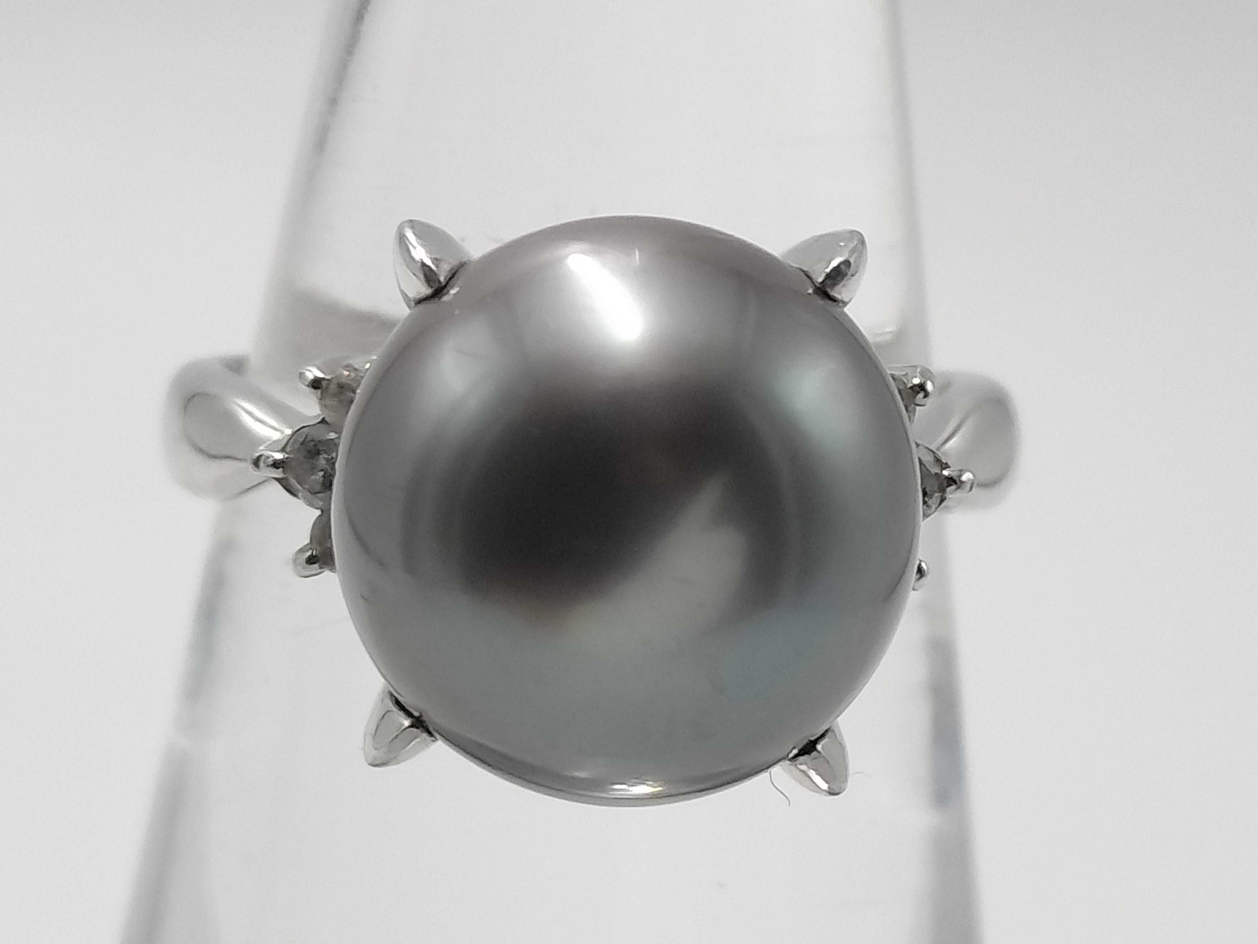 (11941_0322)黒蝶パール直径 約12.0mm D0.10ct Pt900 7.5g リング(貴金属)