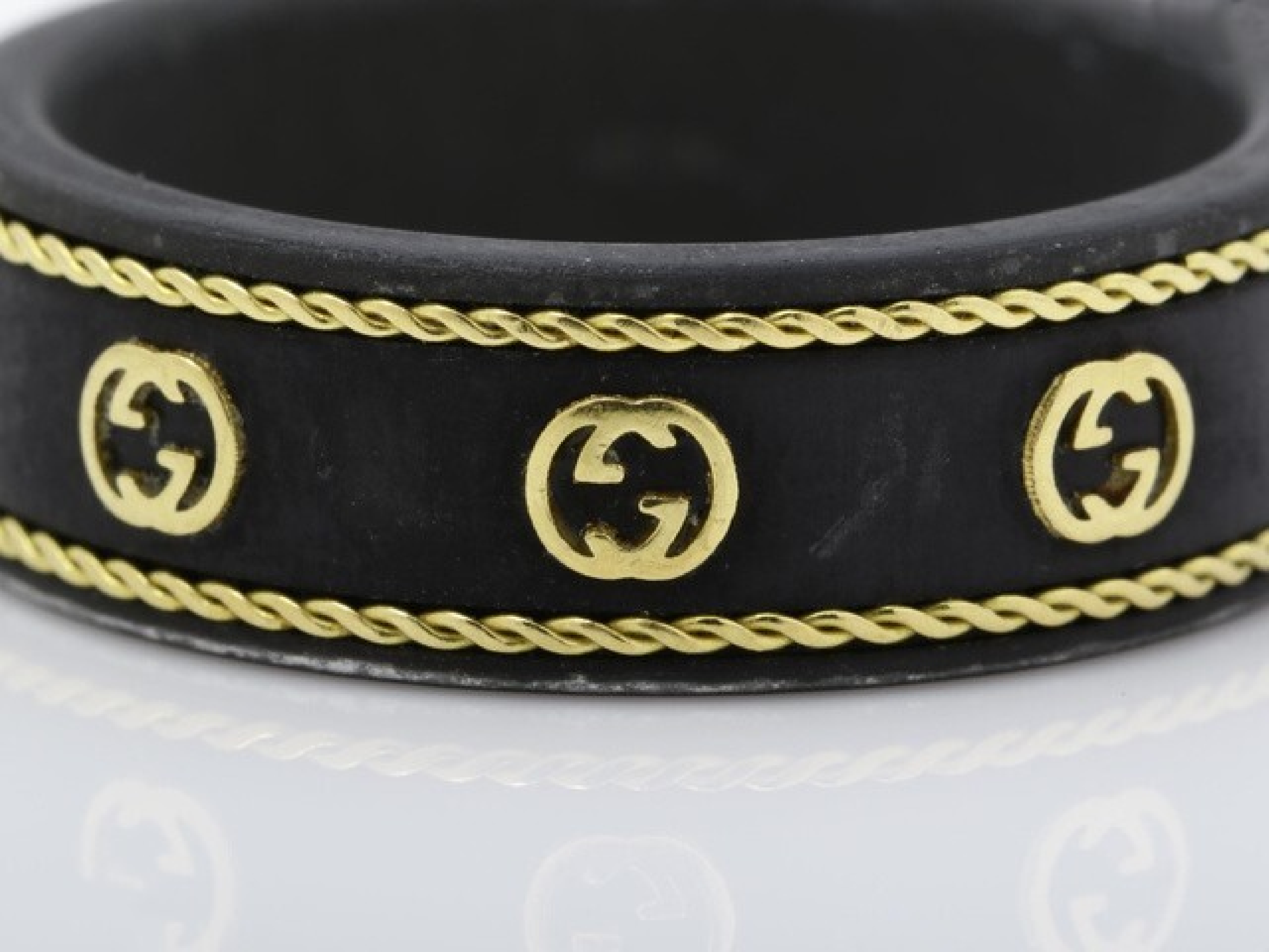 (11941_0459)GUCCI アイコン #20 黒セラ METAL/Au750 3.0g リング(貴金属)